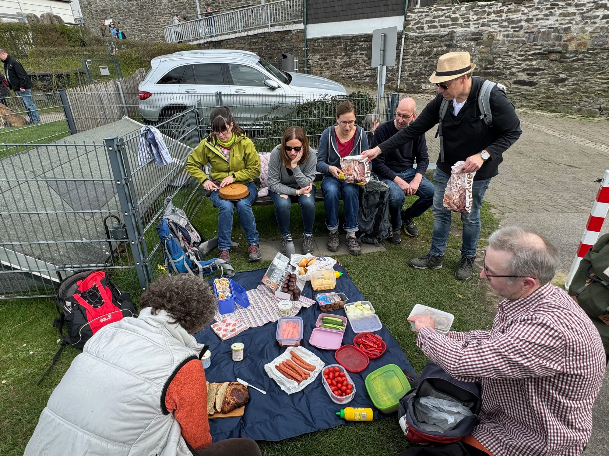 Oben angekommen, belohnten wir uns mit einem gemeinsamen Picknick. Jeder hatte etwas mitgebracht, sodass für jeden Geschmack etwas dabei war.